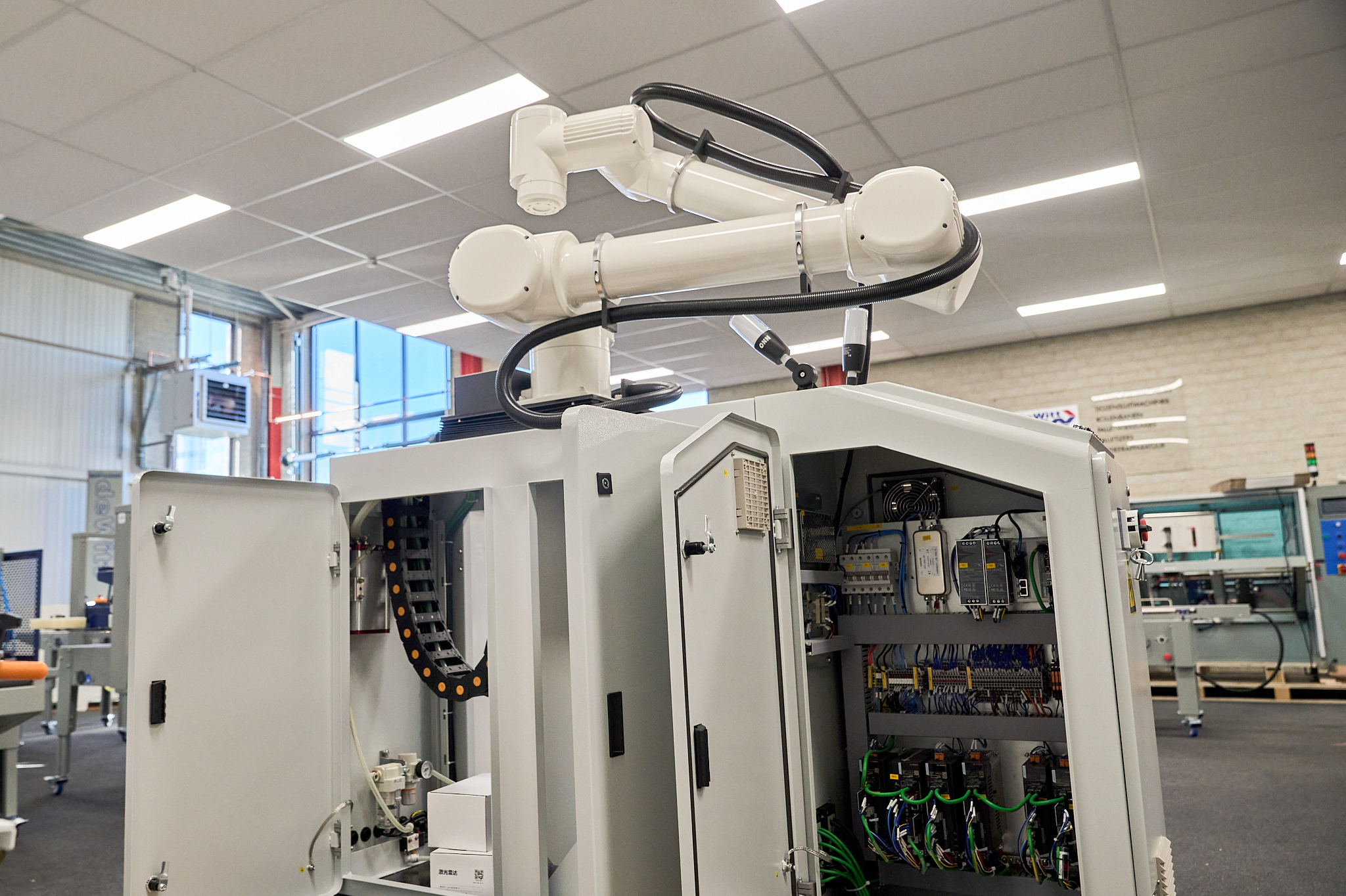 Zwaar en repetitief werk wordt overgenomen door de cobot. Dat voorkomt overbelasting en verhoogt werkplezier.